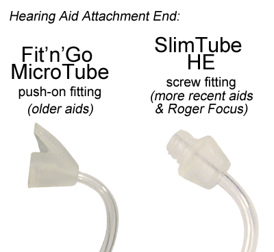 (Identification hints. Fit'Go Micro Tubes are different to SlimTubes which screw onto the hearing aid with a 'female' thread & SlimTube HE which screw into the hearing aid with a 'male' thread. Power Slimtubes & PowerSlimTubes II are only used with custom earmoulds.)