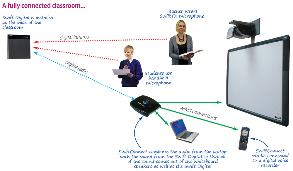 - the voice of the teacher clearly through the Swift Digital