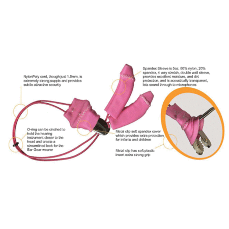 Ear Gear Original comes with two protective covers, cord and clothes clip. Fits BTE hearing aids from 1.25" to 2" (3.2cm - 5cm approx).