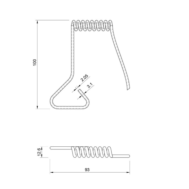 - 10 spiral wounds and bend at connector