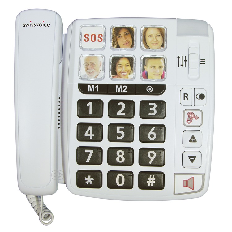 The Swissvoice Xtra 1110 has 6 photo memory buttons which you can customise with photos of family or friends for quick and easy dialing at the push of a button. There is also an SOS label for anyone who would like to use one of the photo buttons for an emergency contact. Photo buttons can also be useful for anyone who suffers from memory loss.