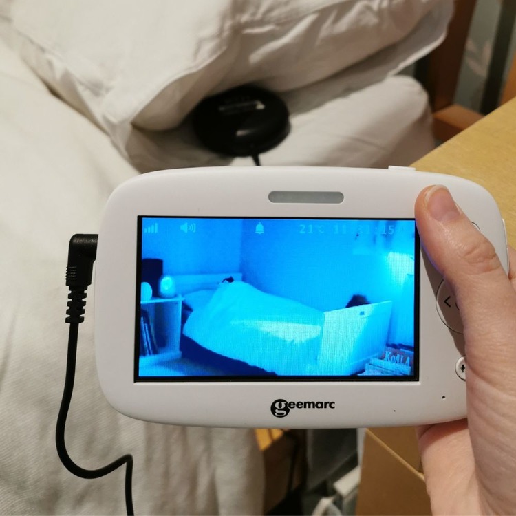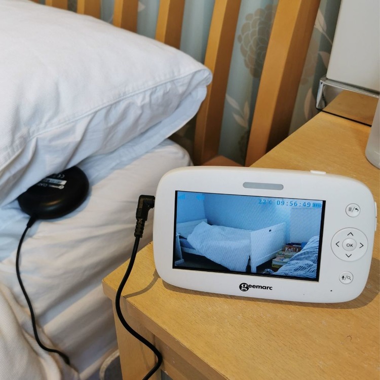 The Geemarc Sentinel 1 Baby Monitor with bed shaker that alarms, flashes and vibrates when noise or movement is detected. A really good baby monitor, specifically designed with deaf parents and carers in mind. It is supplied with a powerful vibrating pad and the alarm is loud, with a bright flash. The video picture quality is very good in both daylight and night vision (see pictures), which is particularly important for parents with hearing loss.