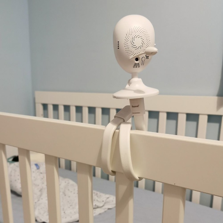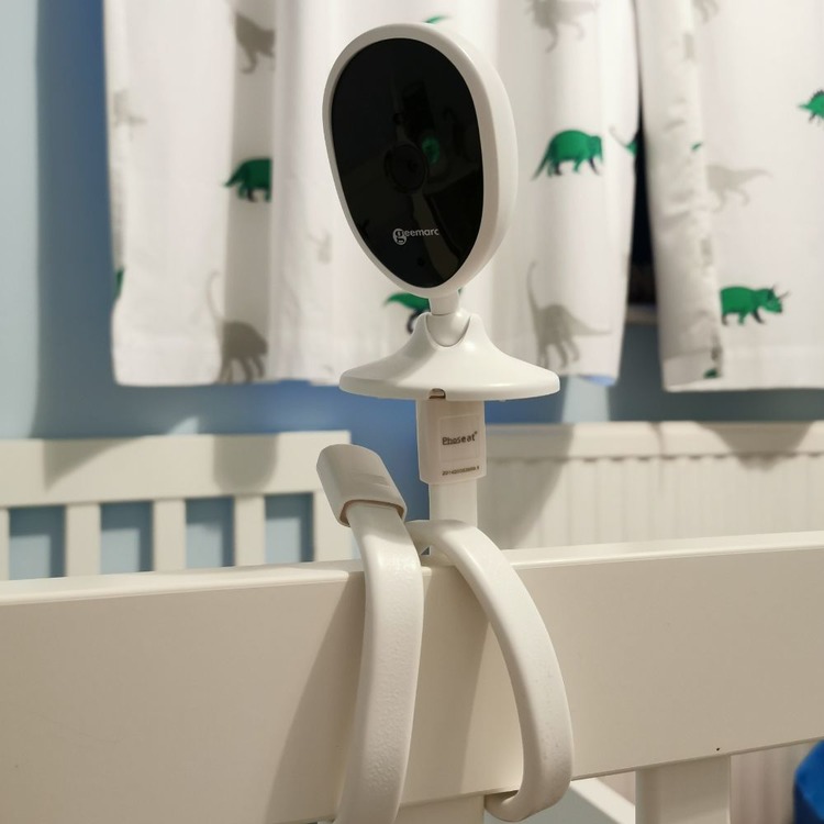 The camera is supplied with a flat stand as well as a snake stand. The snake stand is really useful, especially if you're in a rented property or visiting family. It allows you to suspend the camera from curtain poles, cot bars etc. Clever software in the parent monitor allows you to rotate the picture so even if you install the camera upside down, you will still be able to see the video the correct way up! n.b. always ensure that you place the camera and cables safely, well out of reach of the baby.