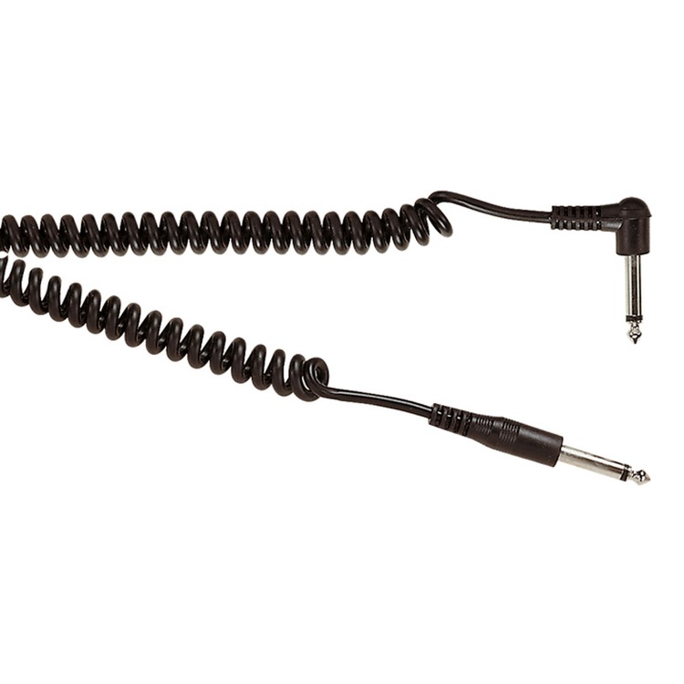 An economical 6.35 mm mono jack to 6.35 mm mono jack plug on a curly screened cable. 6m.