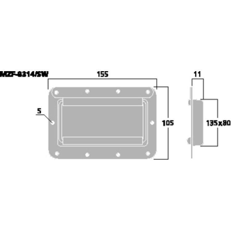 Black recessed, low depth, with stable spring-loaded drop handle, outside: 155x105mm, mounting cutout: 135x80mm.