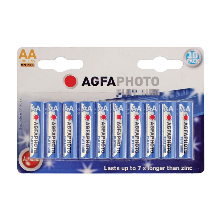 AA Digital Alkaline battery from AGFA PHOTO, ideally suited to general use around the home including cameras, personal multimedia players and remote control toys, etc. Sold and supplied in a blister pack of 10.