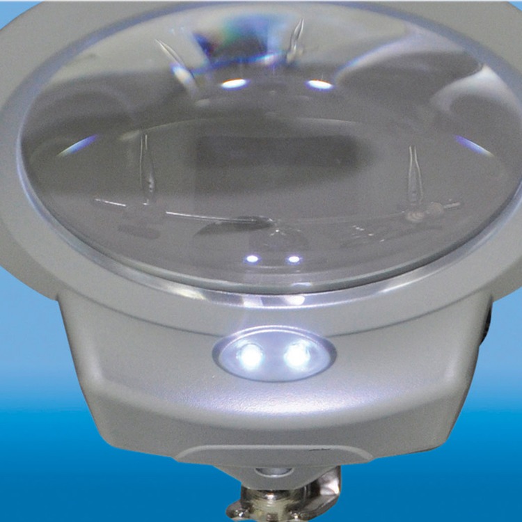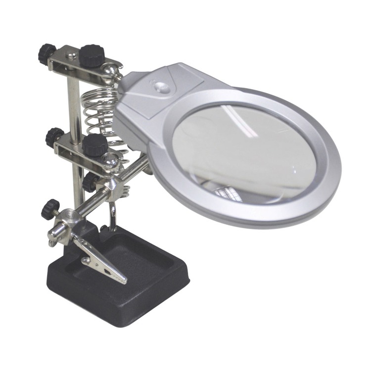 The Helping Hands tool features a round 90 mm magnifier lens (2 x magnification) and includes 2 LED lights (3 x AAA, not supplied).